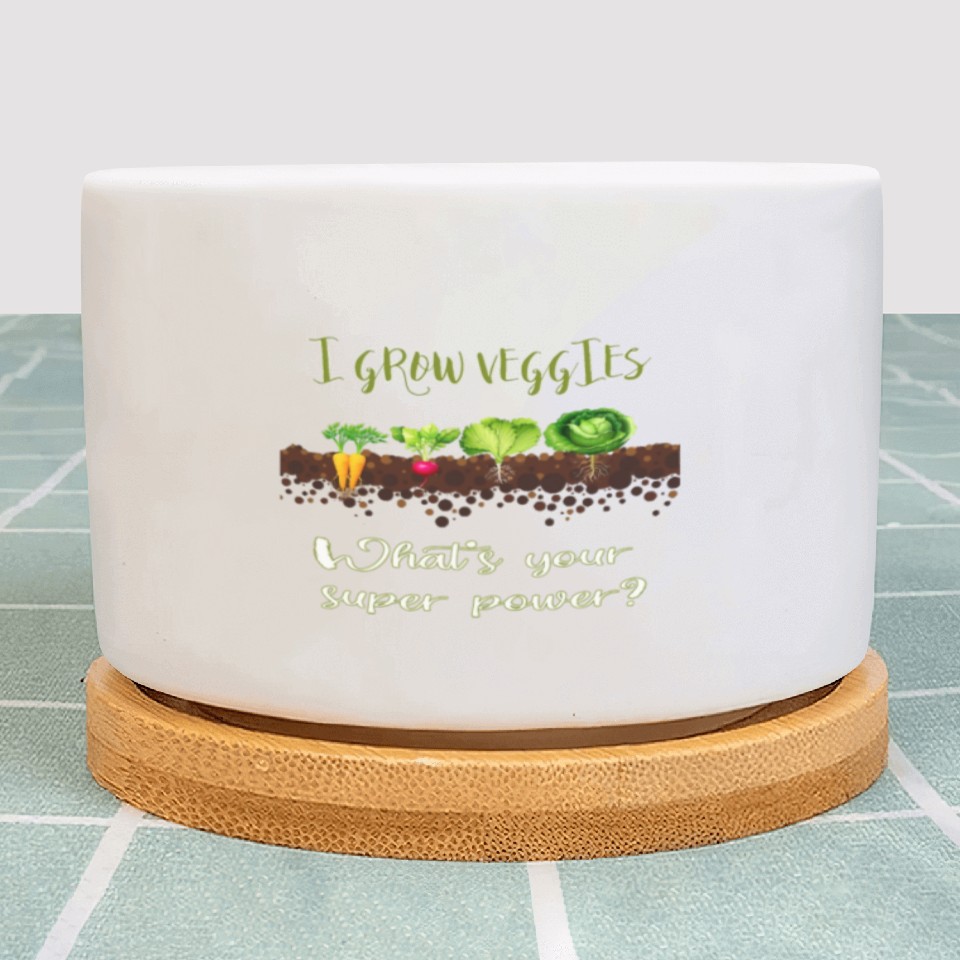 The product unique design you searched for is Vegetable Gardener Gardening Pun Grow Veggies Plant Pots For WHITE belong theme Plant Pots at Printblur