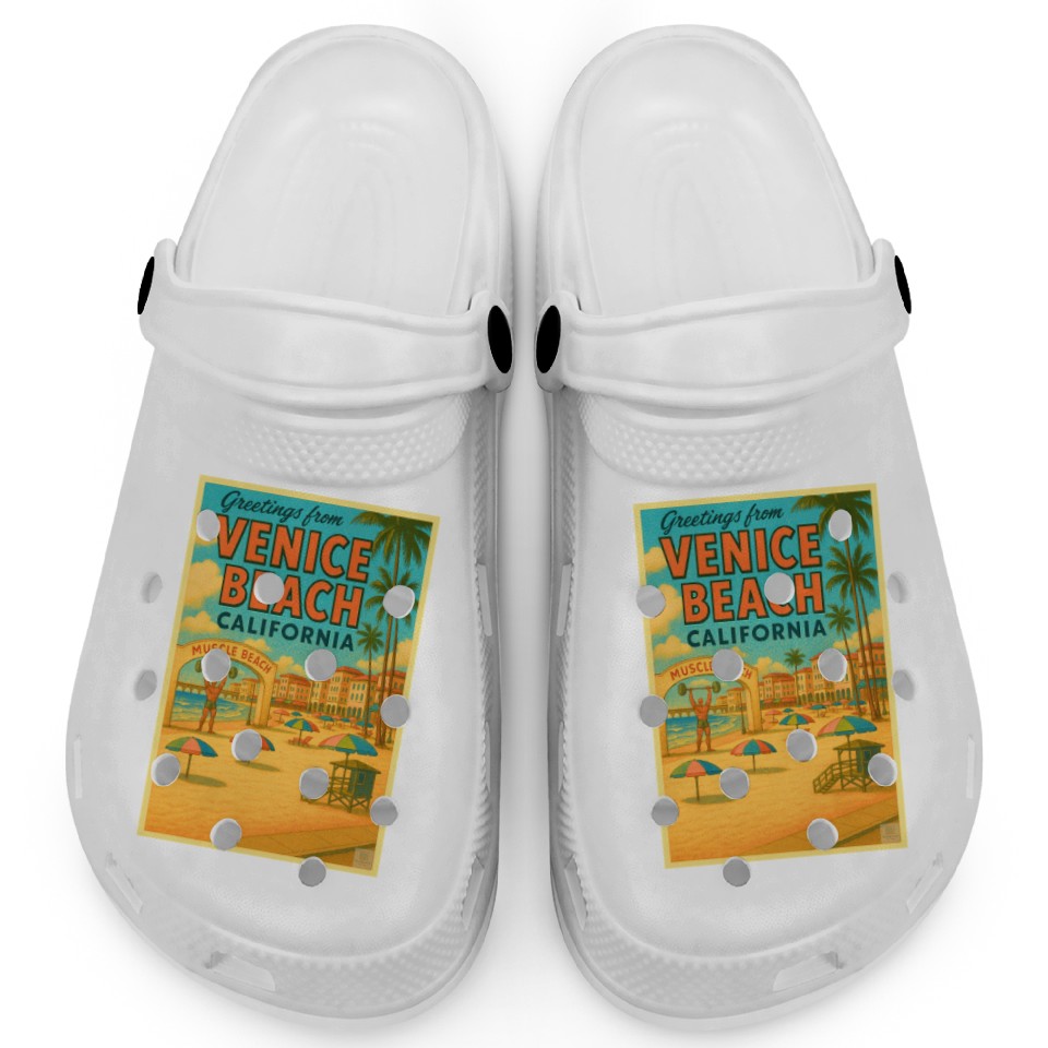 Venice Beach Vintage Postcard Clogs