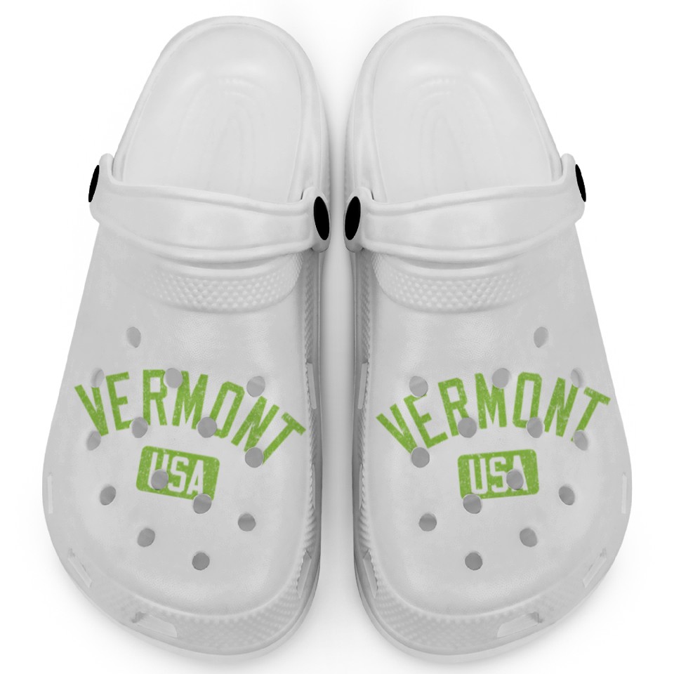 Buy eye-catching Vermont Usa Arched Text Distressed Lime Green Prin Clogs or see more Clogs products at Printblur shop now to explore many surprises from our shop!