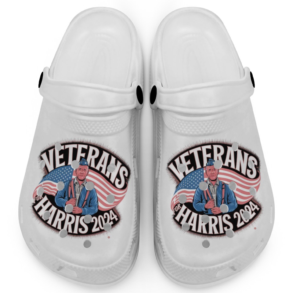 Shop for attractive Veterans Stand with Kamala Harris 2024 Clogs or see more Clogs products on https://printblur.com right now!