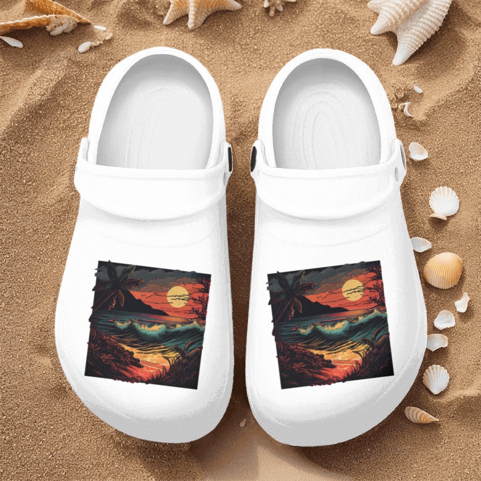 You are shopping for a stunning and trendy product Vibrant Beach Sunset Design - Colorful Paradise Nurse Clogs For Men WHITE belong theme Nurse Clogs at Printblur