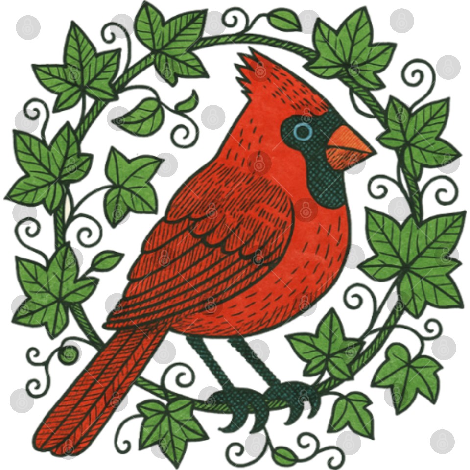 Vibrant Cardinal Amidst Ivy Leaves Digital Files