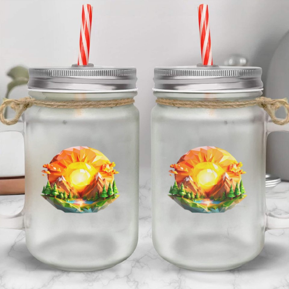 Own fascinating Vibrant Geometric Sunrise Landscape – Nature-Inspi Mason Jar Cups or see more Mason Jar Cups products now from Printblur shop to enjoy your shopping time!