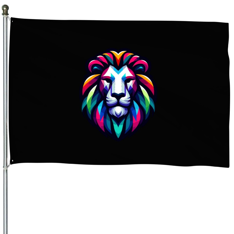 Shop for attractive Vibrant Spectrum Lion - Abstract Wildlife Majesty House Flags or see more House Flags products on https://printblur.com right now!