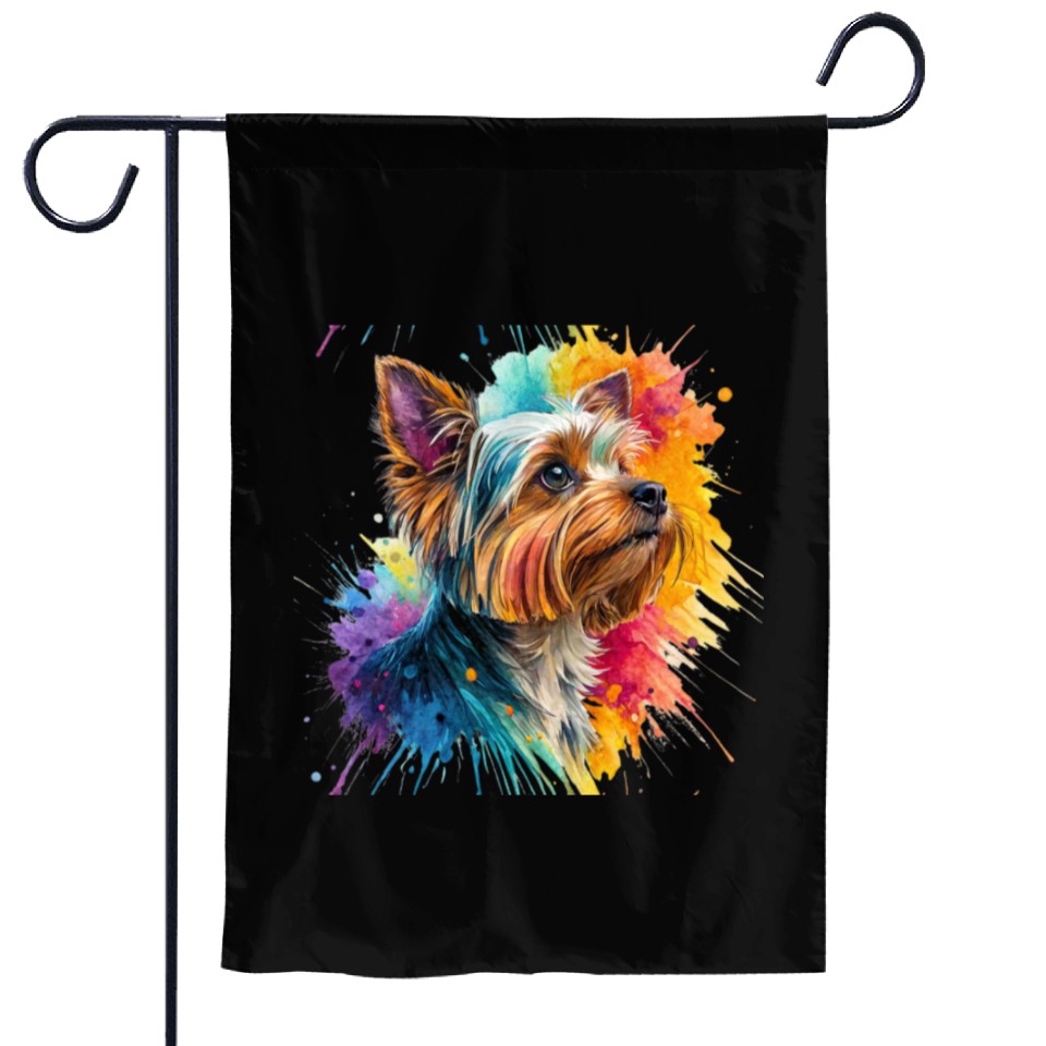 Shop for attractive Vibrant Yorkie Watercolor Portrait Garden Flags or see more Garden Flags products on https://printblur.com right now!