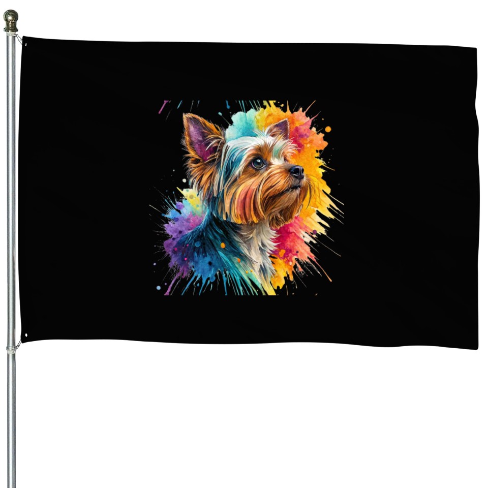 Shop for attractive Vibrant Yorkie Watercolor Portrait House Flags or see more House Flags products on https://printblur.com right now!