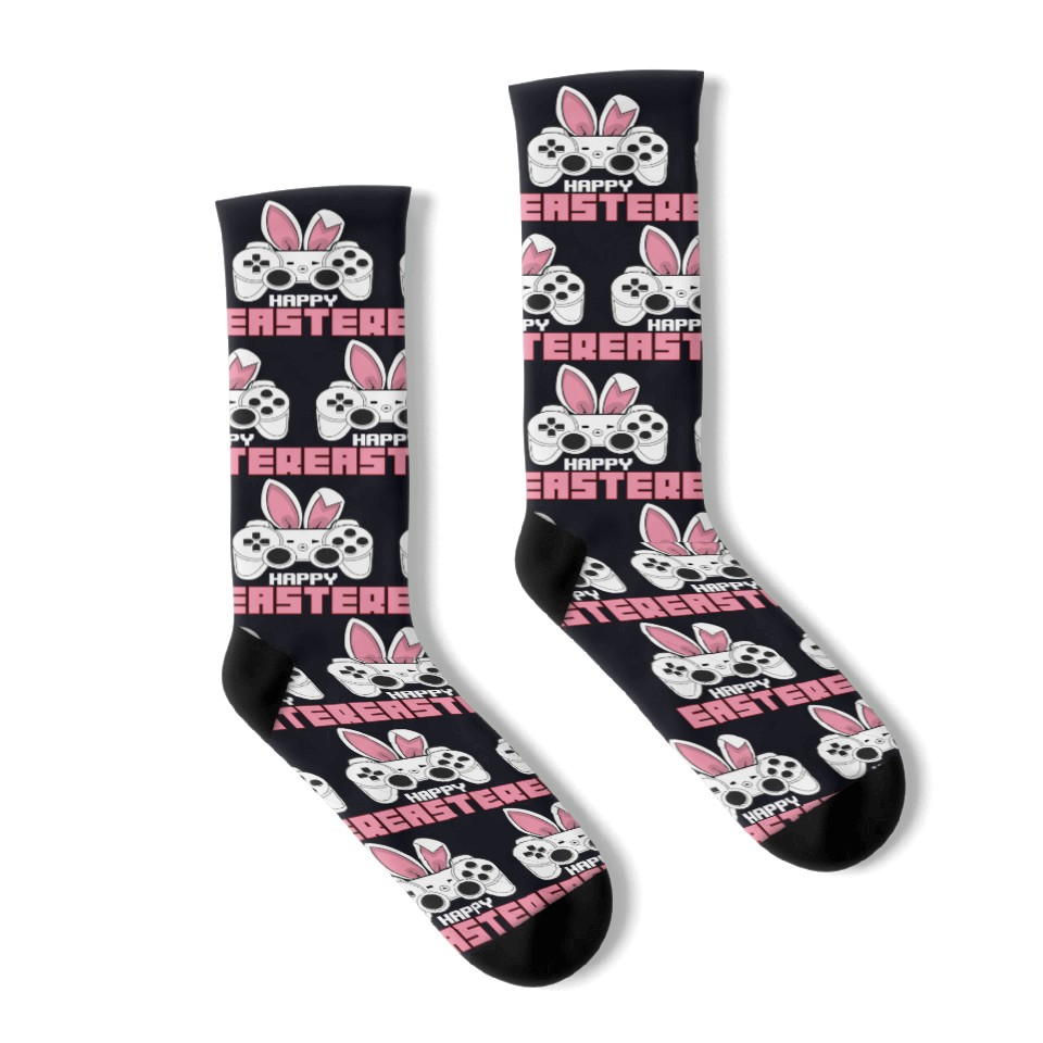 Buy eye-catching Video Game Bunny Controller Happy Easter Gamer Socks or see more Socks products at Printblur shop now to explore many surprises from our shop!