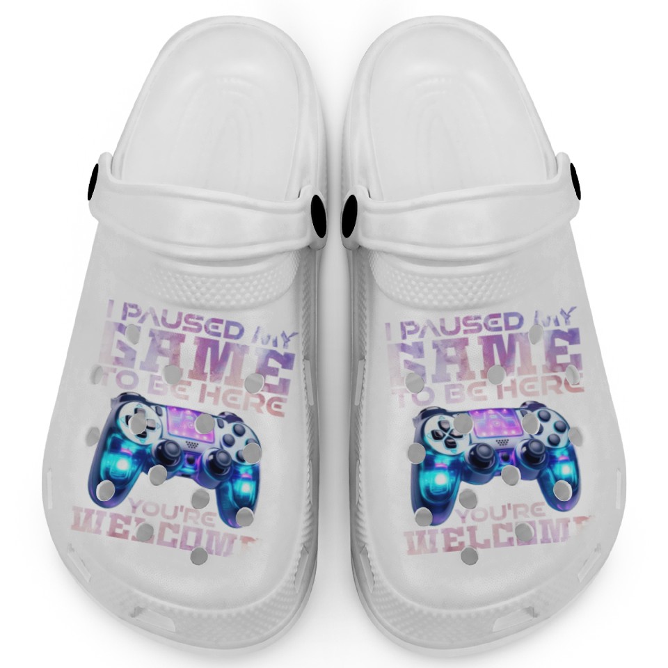 You are contemplating one of the best-selling products Video Player Addicted I Paused My Game to be Here Clogs For Kids WHITE belong theme Clogs at Printblur
