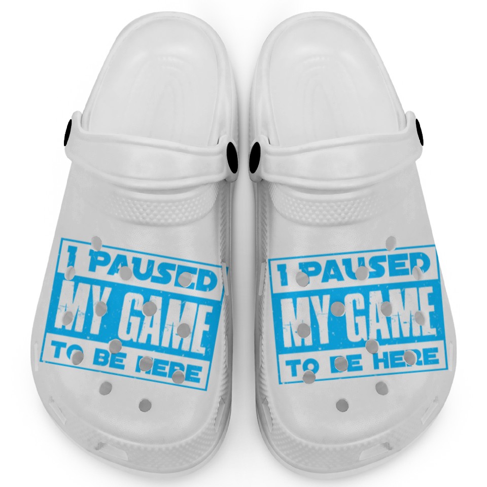 You're searching for a one-of-a-kind product Video Player Addicted I Paused My Game to be Here Clogs For Kids WHITE belong theme Clogs at Printblur