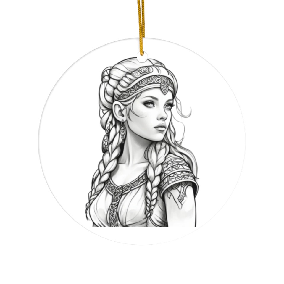 You're looking at the eye-catching product Viking female hairstyles grayscale Ceramic Ornaments For WHITE belong theme Ceramic Ornaments at Printblur