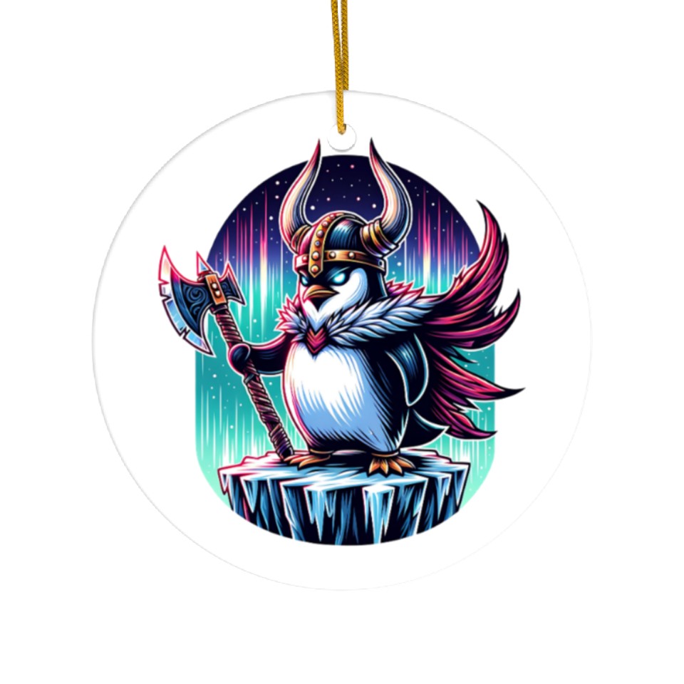 Shop for attractive Viking Penguin Warrior Under Northern Lights Ceramic Ornaments or see more Ceramic Ornaments products on https://printblur.com right now!