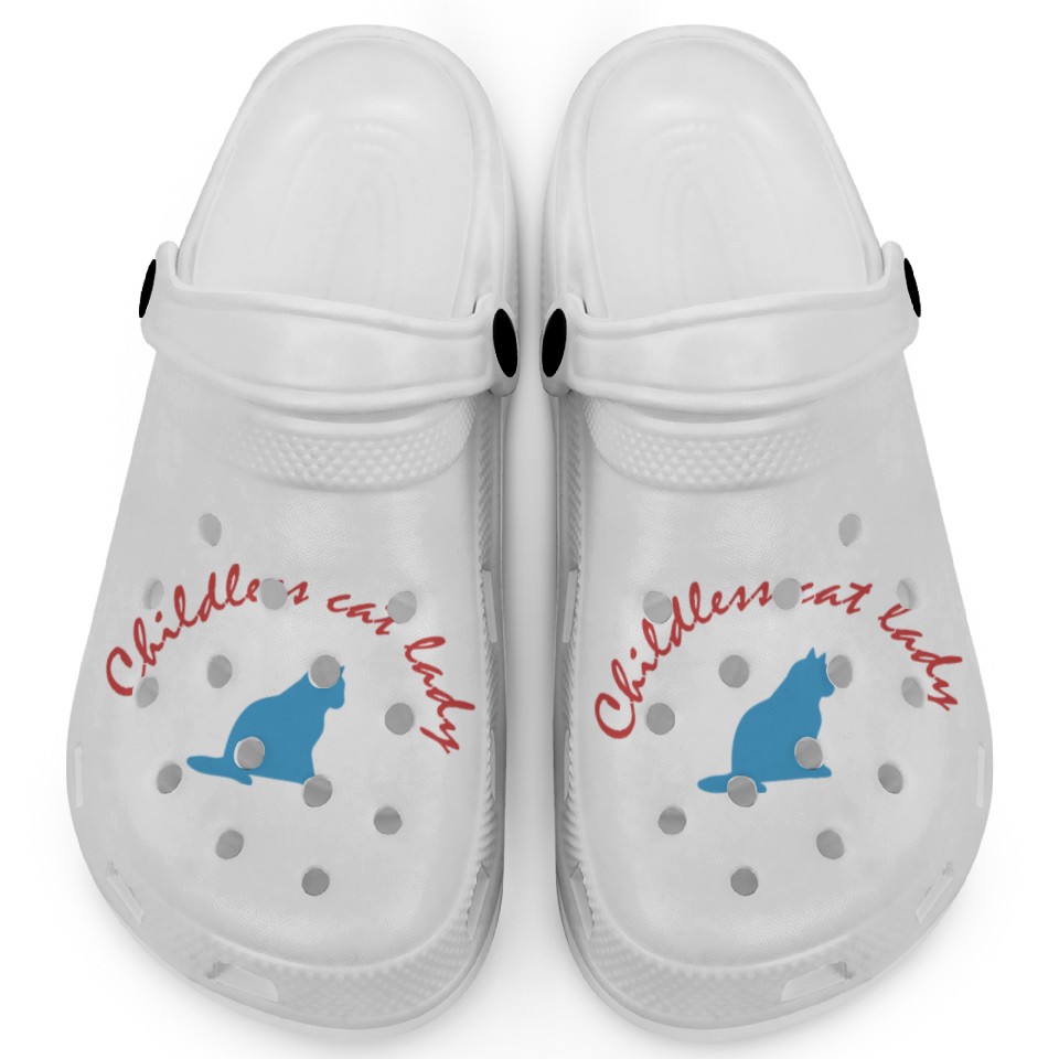 You are shopping for a stunning and trendy product Vintage And Retro Funny Childless Cat Lady Clogs For Kids WHITE belong theme Clogs at Printblur