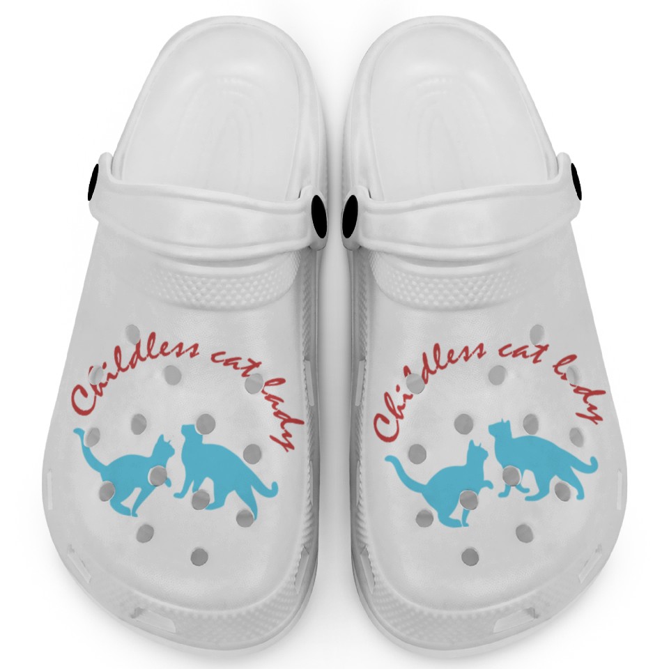 The item hot trend you're looking at is Vintage And Retro Funny Childless Cat Lady Clogs For Kids WHITE belong theme Clogs at Printblur