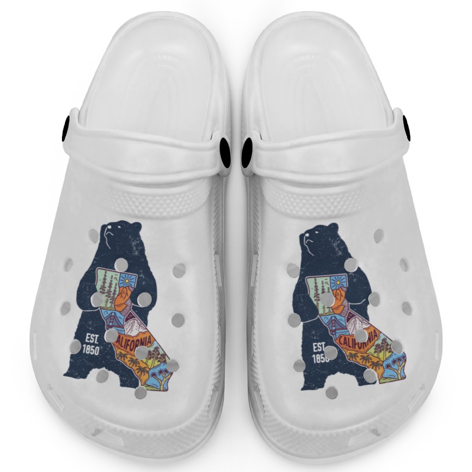 You are viewing one of the trendiest products Vintage California Bear EST 1850 Clogs For Kids WHITE belong theme Clogs at Printblur