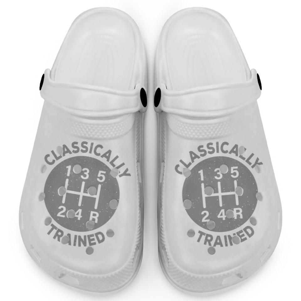 You're looking at the eye-catching product Vintage Classically Trained-Stick Shift Clogs For Kids WHITE belong theme Clogs at Printblur