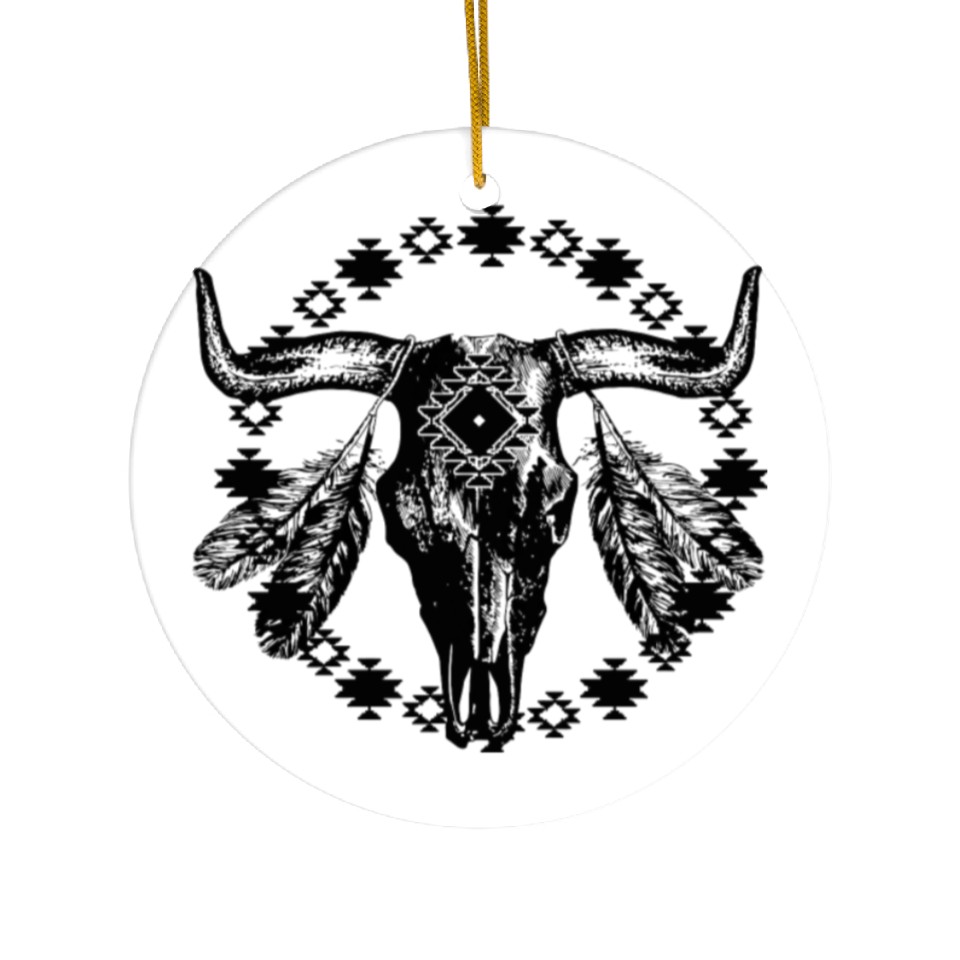 You are viewing one of the trendiest products Vintage Cow Bull Skull Boho Southwestern Aztec Fea Ceramic Ornaments For WHITE belong theme Ceramic Ornaments at Printblur