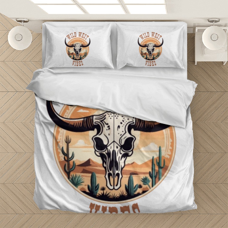 You are seeing a unique and impressive product Vintage Cow Skull Wild West Vibes Bedding Sets For WHITE belong theme Bedding Sets at Printblur