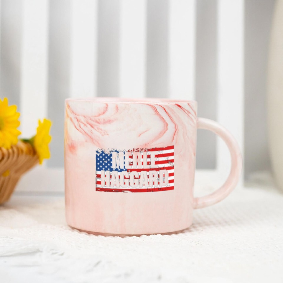You are viewing an exclusive and elegant product Vintage Graphic Merle Haggard On Flag Marble Mugs For Pink belong theme Marble Mugs at Printblur