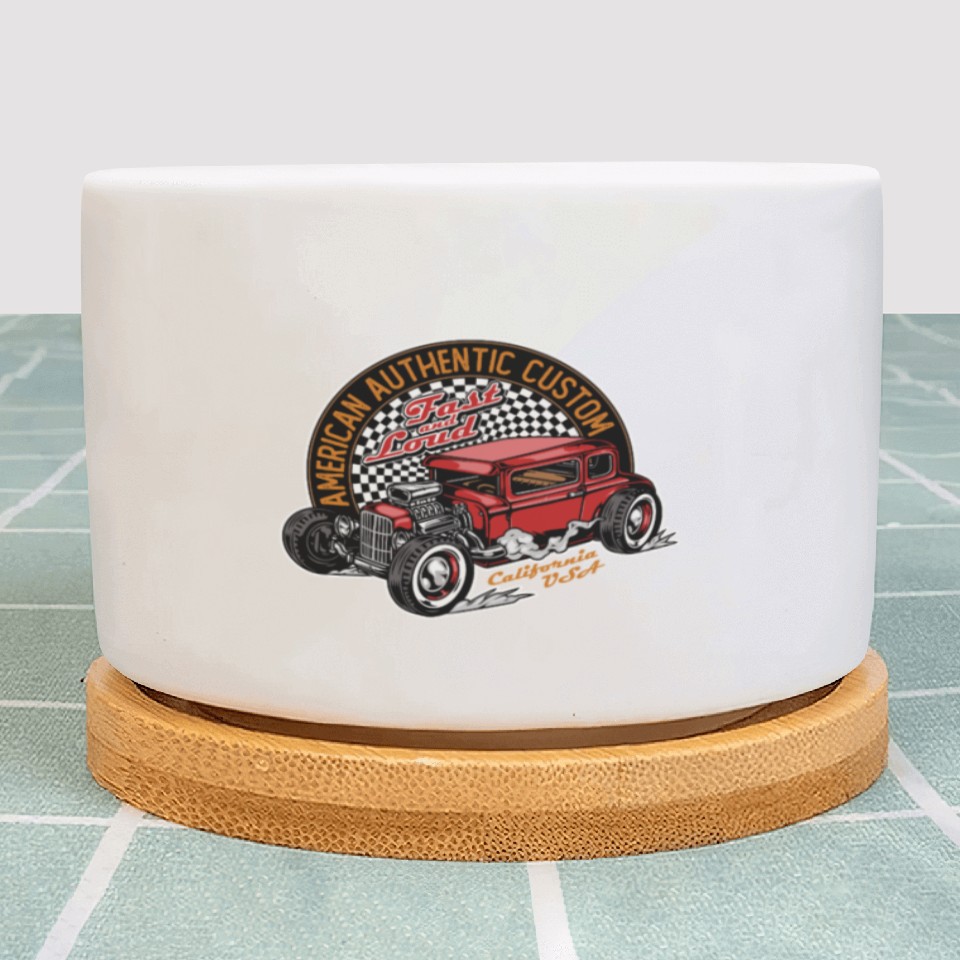 The item hot trend you're looking at is Vintage Hot Rod Car Illustration Plant Pots For WHITE belong theme Plant Pots at Printblur