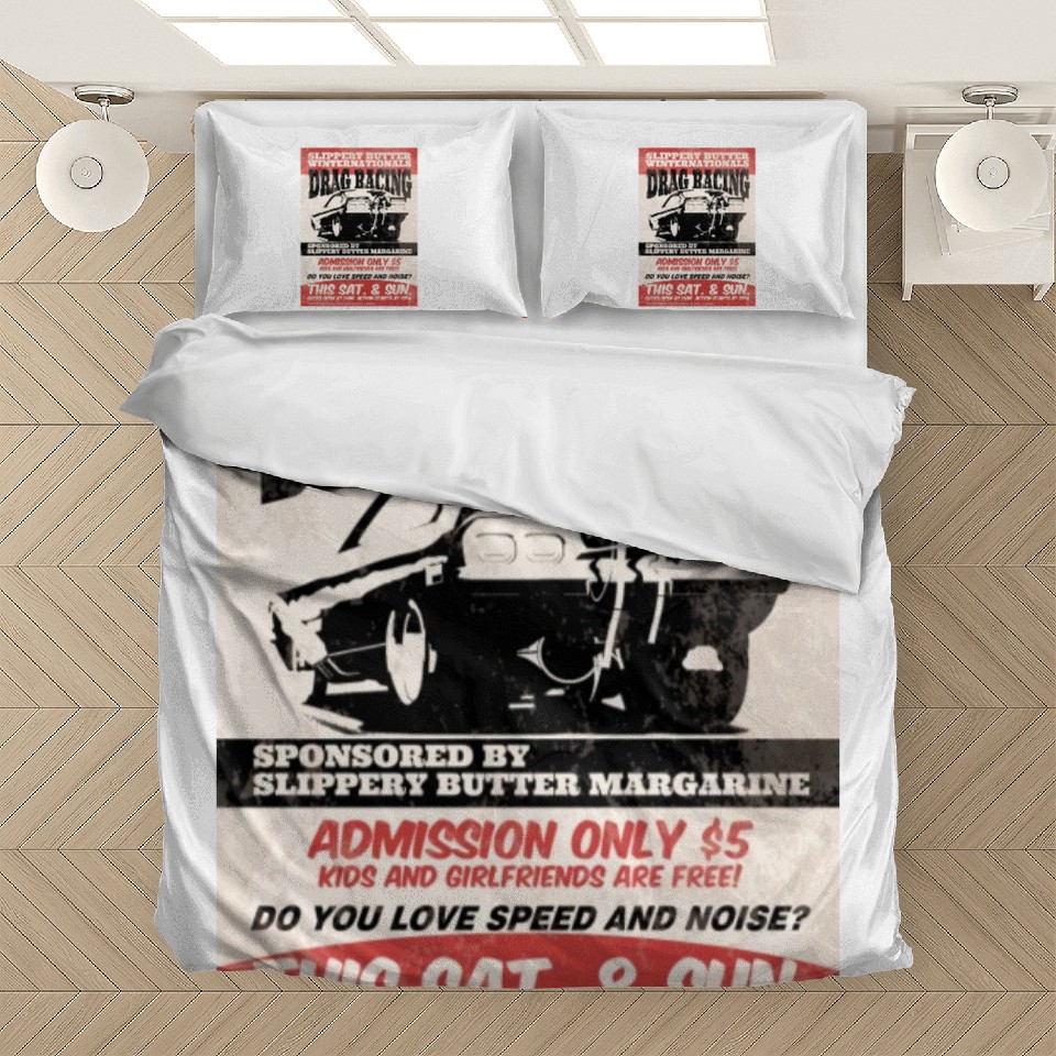 You are seeing a unique and impressive product Vintage Hot Rod Classic Drag Racing Poster Bedding Sets For WHITE belong theme Bedding Sets at Printblur