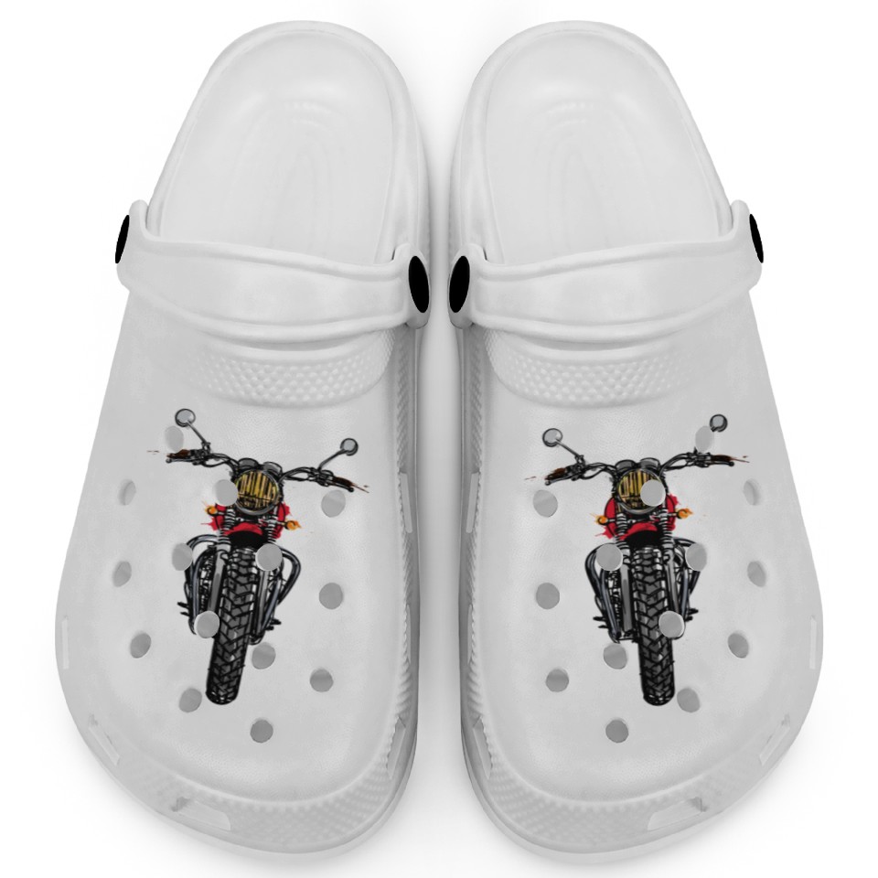 You are seeing a unique and impressive product Vintage Motorbike Biker Motorcyclist Ride Clogs For Kids WHITE belong theme Clogs at Printblur