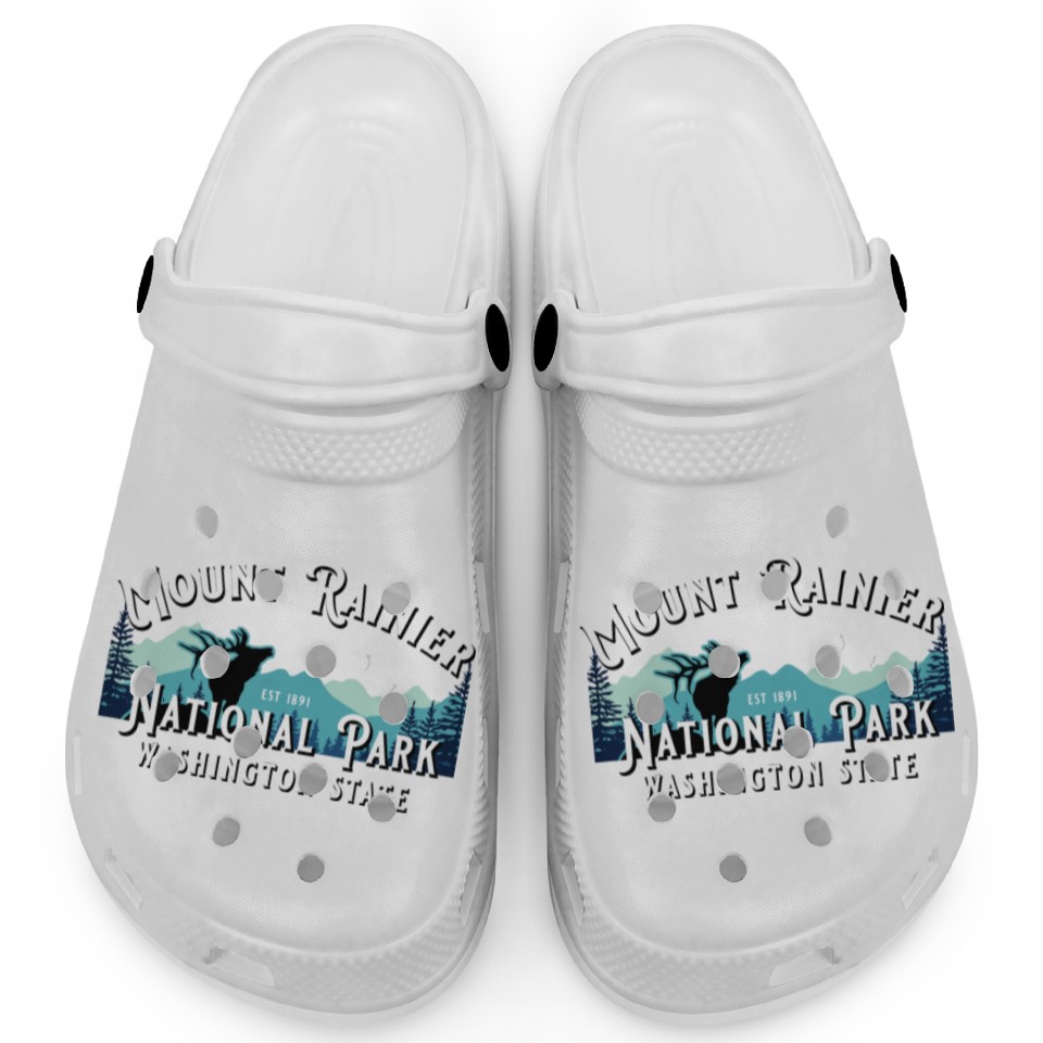 You are viewing an exclusive and elegant product Vintage Mount Rainier National Park Washington Sou Clogs For Kids WHITE belong theme Clogs at Printblur