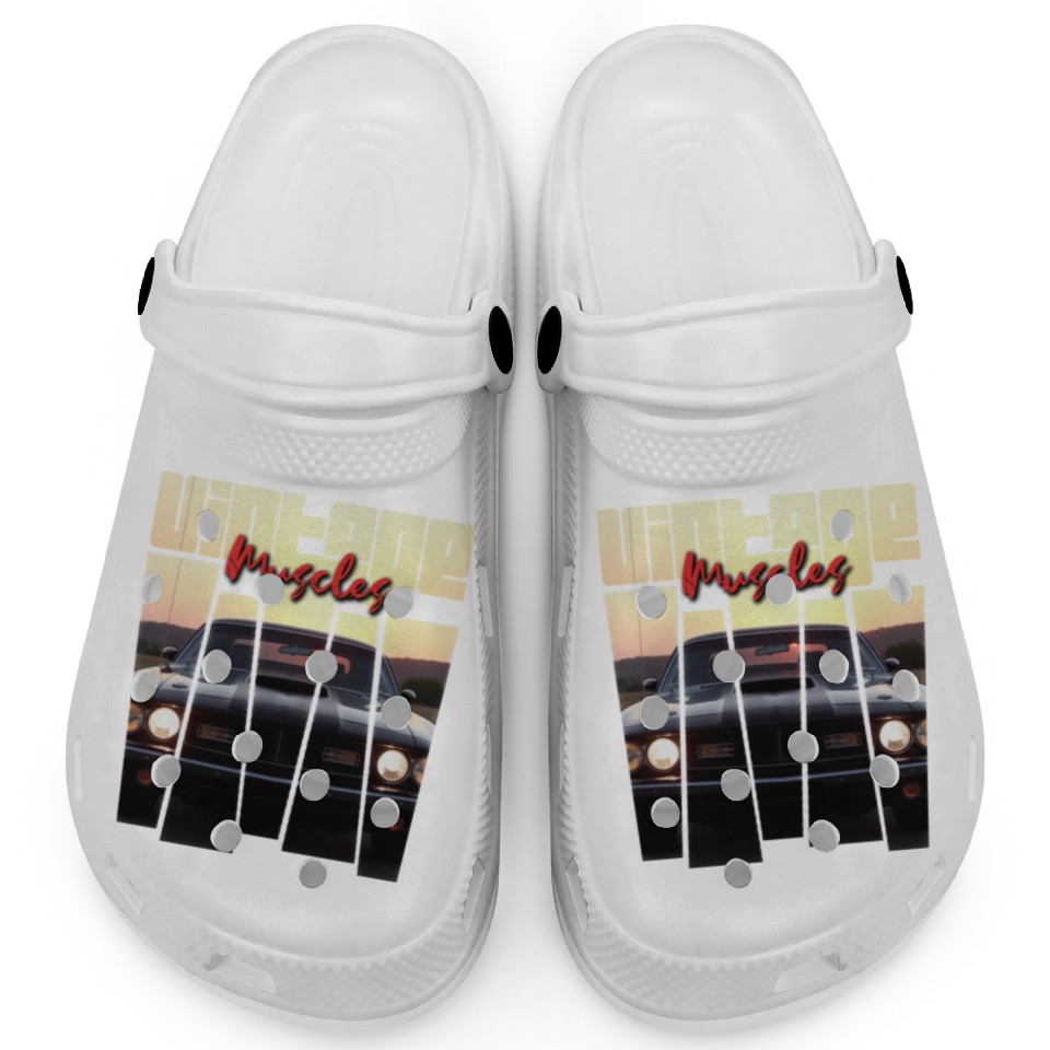 You are viewing an exclusive and elegant product Vintage Muscle Car Sunset Poster Retro American Clogs For Kids WHITE belong theme Clogs at Printblur