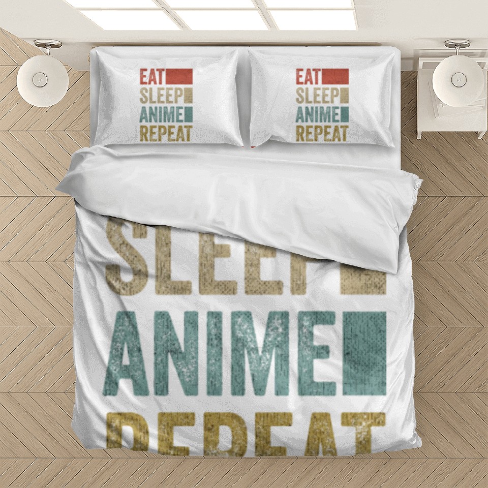 Own fascinating Vintage Retro Eat Sleep Anime Repeat Gift Funny Bedding Sets or see more Bedding Sets products now from Printblur shop to enjoy your shopping time!