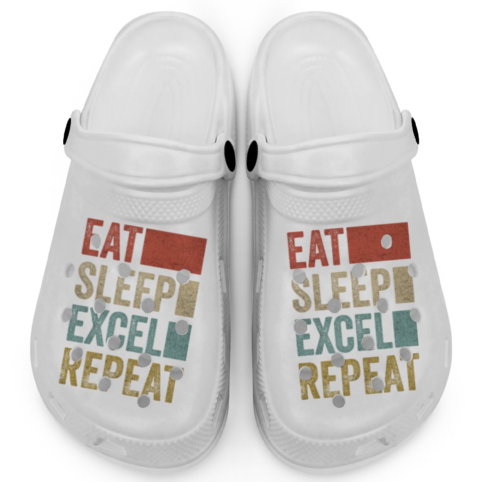 Shop for attractive Vintage Retro Eat Sleep Excel Repeat Funny Excel Clogs or see more Clogs products on https://printblur.com right now!