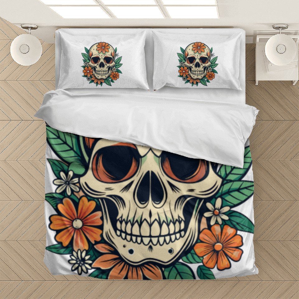 Own fascinating Vintage Retro Halloween Sugar Skull with floral Bedding Sets or see more Bedding Sets products now from Printblur shop to enjoy your shopping time!
