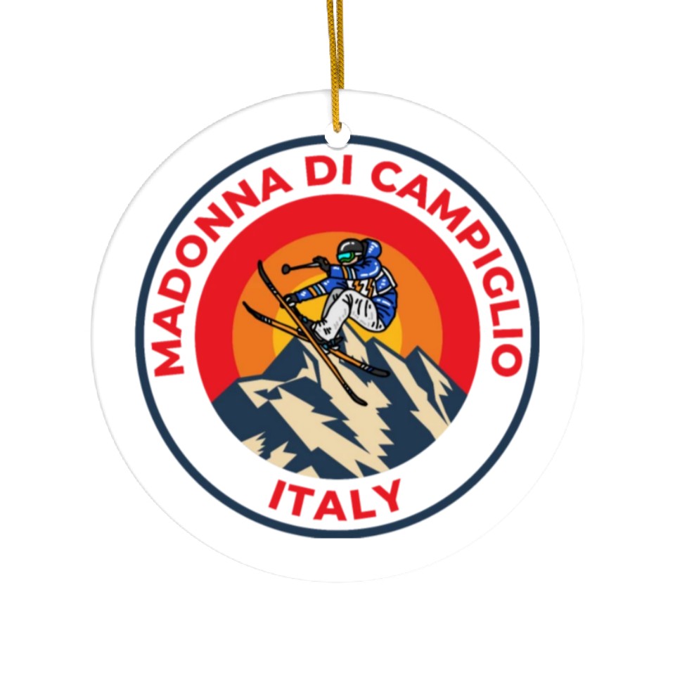 You're looking at the eye-catching product Vintage Skiing Madonna Di Campiglio Italy Sunset Ceramic Ornaments For WHITE belong theme Ceramic Ornaments at Printblur