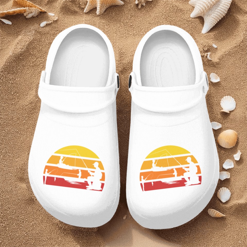 You are viewing one of the trendiest products Vintage sunset fishing boat angler Nurse Clogs For Men WHITE belong theme Nurse Clogs at Printblur