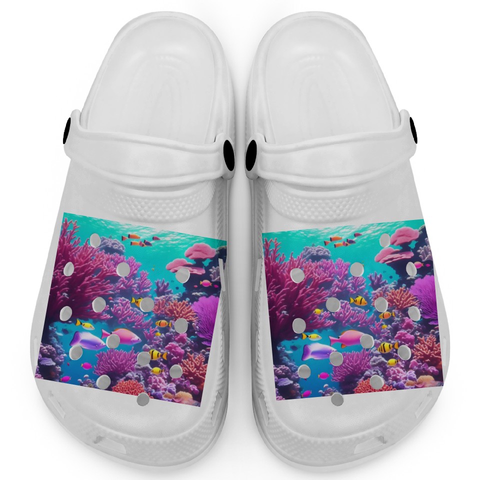 The product unique design you searched for is Viral magenta coral reef with tropical fish Clogs For Kids WHITE belong theme Clogs at Printblur