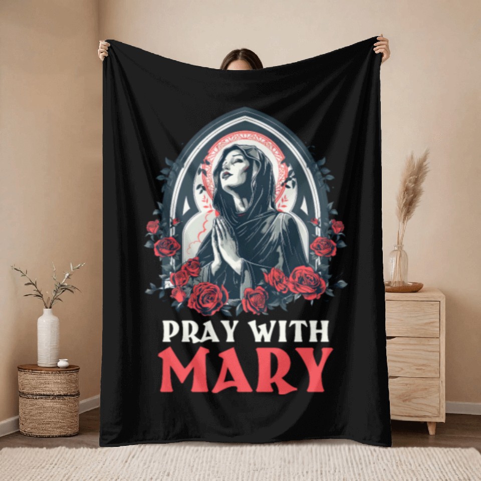 You are viewing an exclusive and elegant product Virgin Mary Pray With Mary Throw Blankets For Black belong theme Throw Blankets at Printblur
