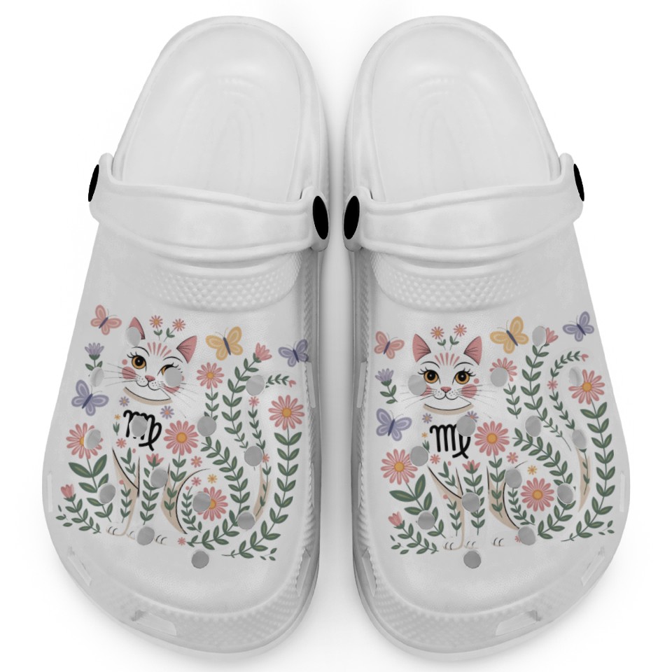 You're looking at the eye-catching product Virgo Zodiac Cat with Daisies Clogs For Kids WHITE belong theme Clogs at Printblur