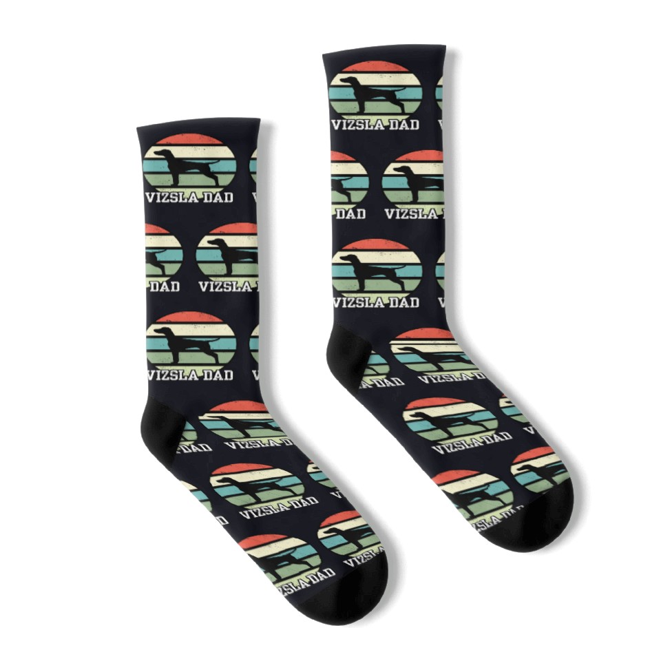 Buy stunning Vizsla Dad I Retro Vizsla Dad Socks or see more Socks products at Printblur right now to receive many amazing discounts!