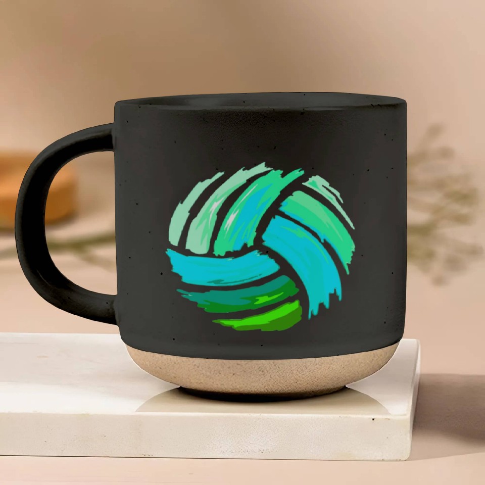 You are seeing a unique and impressive product Volleyball Blue Green Ball Forns Pottery Mugs For Black belong theme Pottery Mugs at Printblur