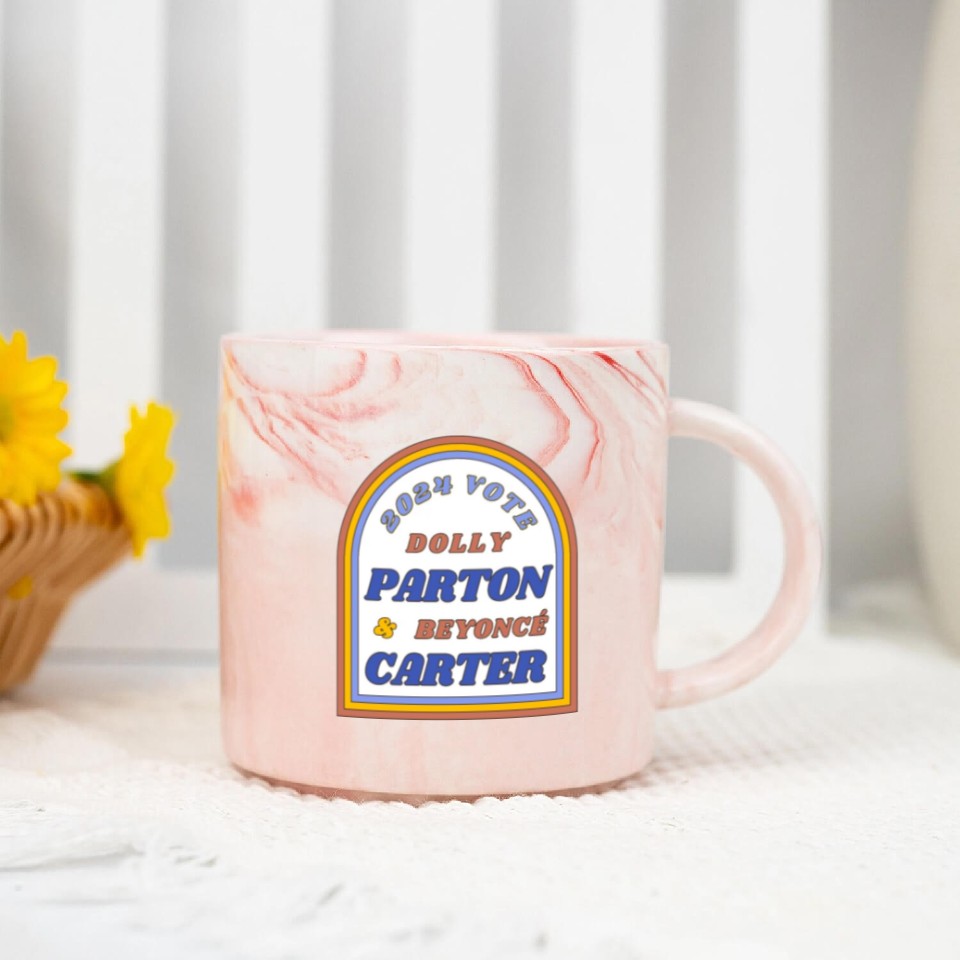 You are viewing one of the trendiest products Vote Dolly Parton & Beyonce Carter 2024 Election Marble Mugs For Pink belong theme Marble Mugs at Printblur