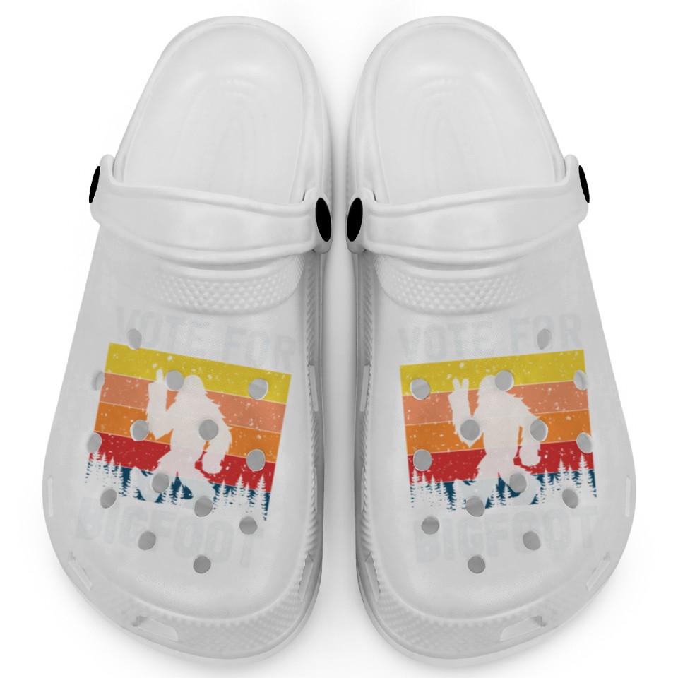 You're searching for a one-of-a-kind product Vote For Bigfoot Funny Retro Graphic Novelty Clogs For Kids WHITE belong theme Clogs at Printblur