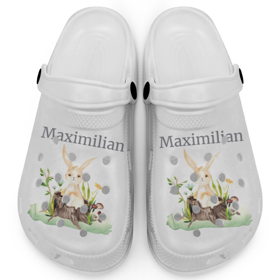 You are shopping for a stunning and trendy product Waldtier Reh Hase Hedgehog Flowers Name Maximilian Clogs For Kids WHITE belong theme Clogs at Printblur