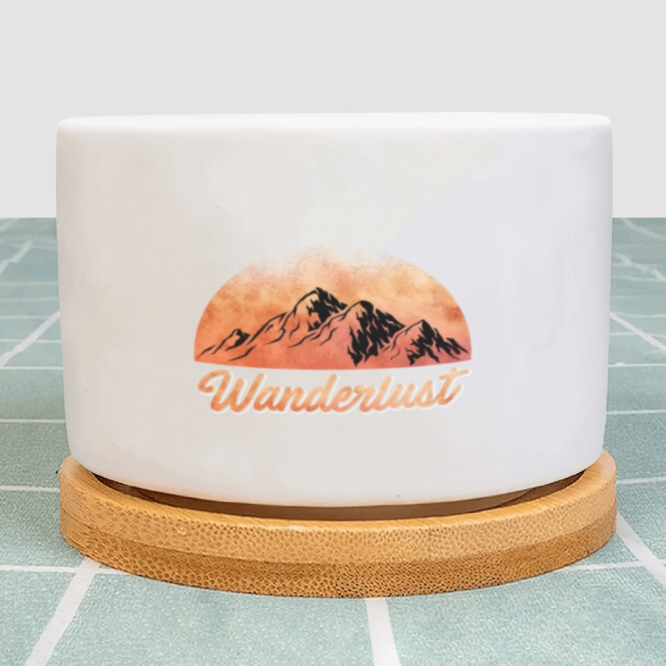 You're searching for a one-of-a-kind product Wanderlust Mountaineer Hiker Summit sport Plant Pots For WHITE belong theme Plant Pots at Printblur