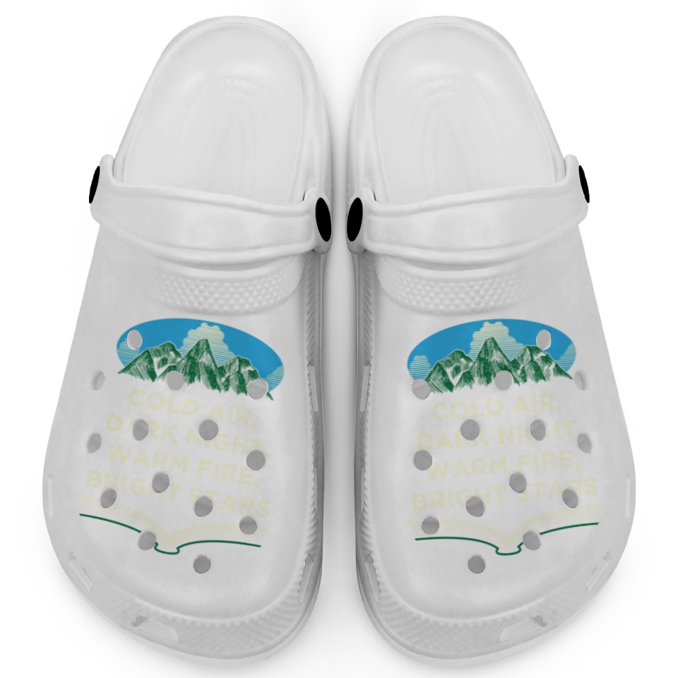 Warm Fire Bright Stars Camping Wildlife Camper Out Clogs
