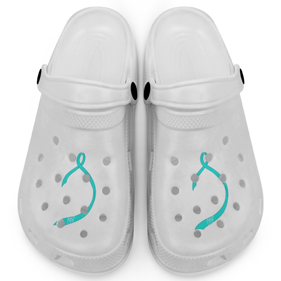 You are seeing a unique and impressive product Warrior Bow Warrior Teal Ribbon Ovarian Cancer Clogs For Kids WHITE belong theme Clogs at Printblur