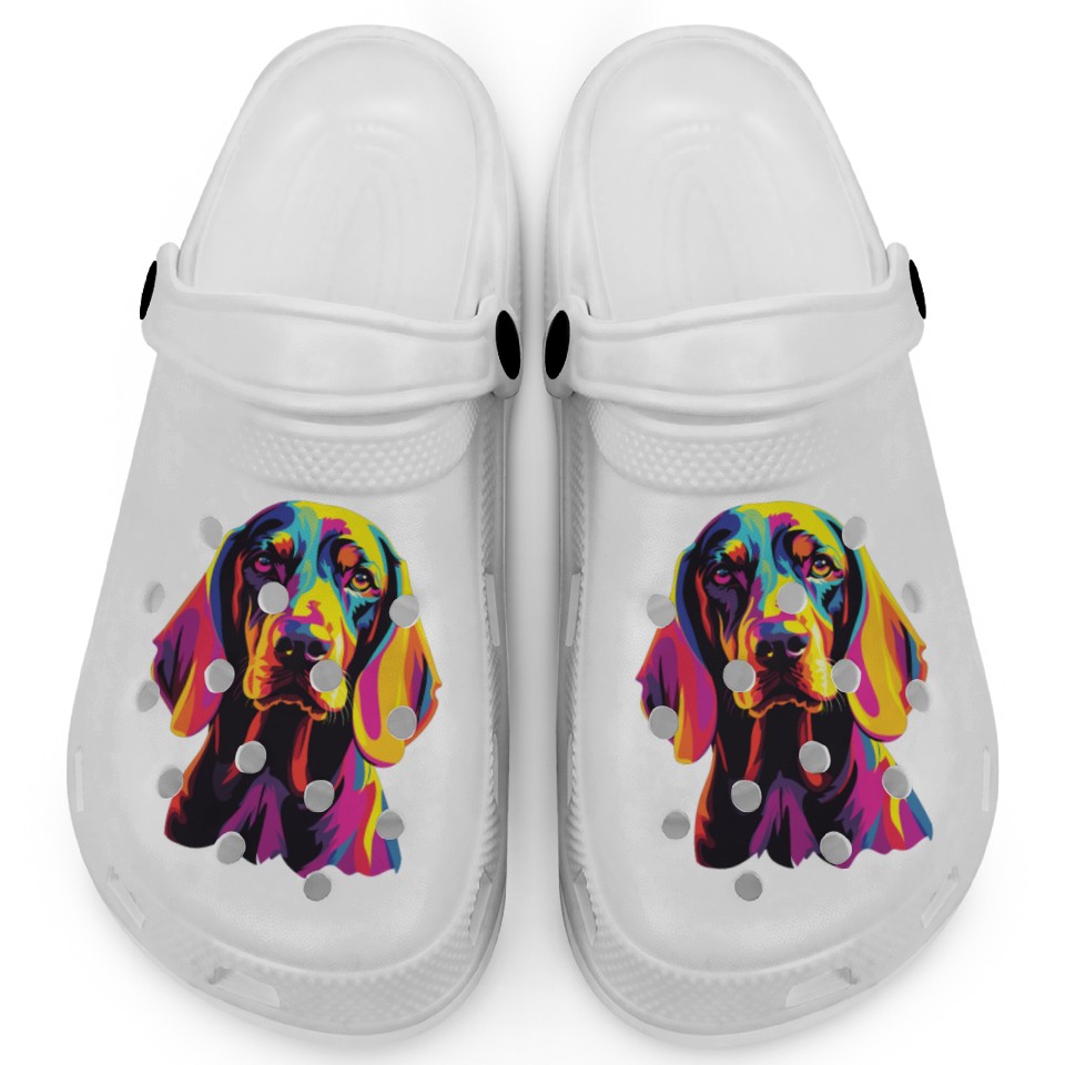 Watercolor Colorful Black And Tan Coonhound Clogs