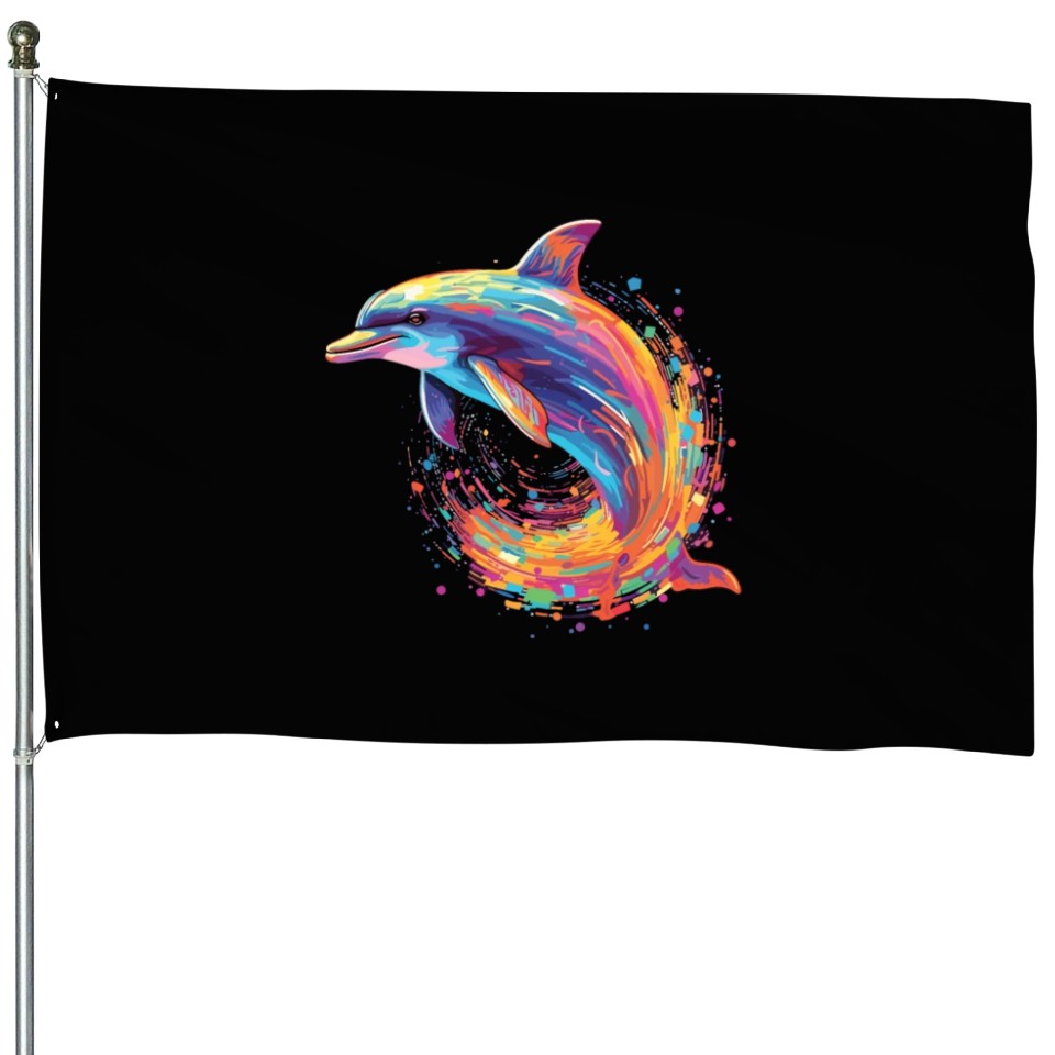 You're searching for a one-of-a-kind product Watercolor Colorful Dolphin Colorful Animals House Flags For Black belong theme House Flags at Printblur