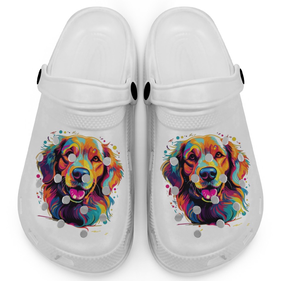 Watercolor Colorful Golden Retriever Clogs