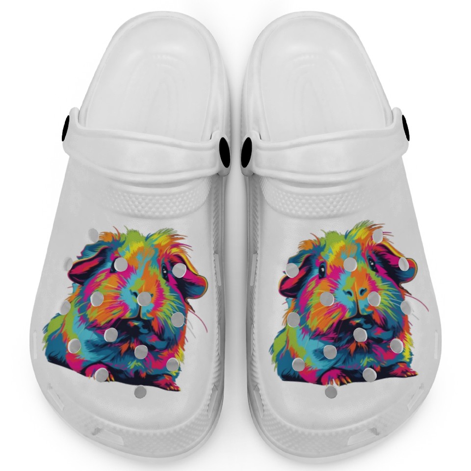 You're looking at the eye-catching product Watercolor Colorful Guinea Pig Colorful Clogs For Kids WHITE belong theme Clogs at Printblur