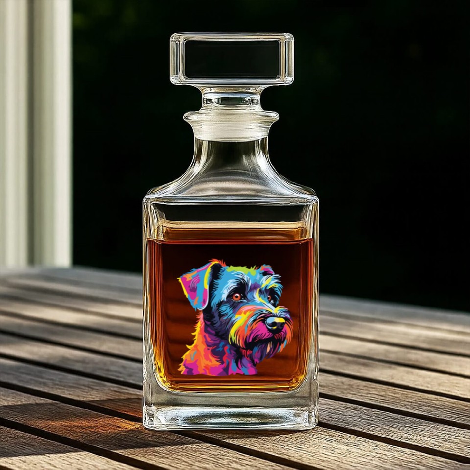 Watercolor Colorful Tschechischer Terrier Whiskey Decanters