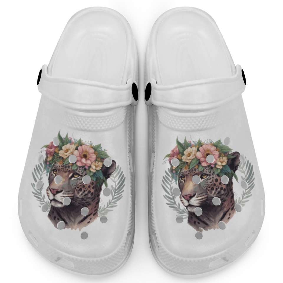 Watercolor Jaguar Flower Crown Wild Cat Lover Clogs