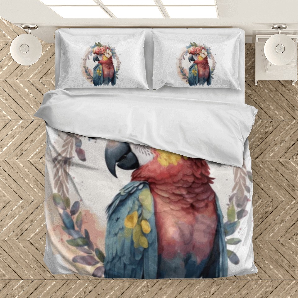 You are viewing an exclusive and elegant product Watercolor Parrot Macaw Bird Flower Crown Pet Bird Bedding Sets For WHITE belong theme Bedding Sets at Printblur